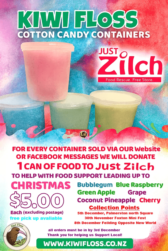 on the 7th December we got to put our Golden Kiwi Fund to use in the community we gave out over 200 Free Cotton Candy on sticks as part of a community party setup by Feilding Blue Light and other community organisations
